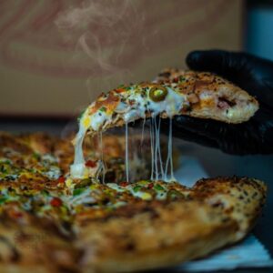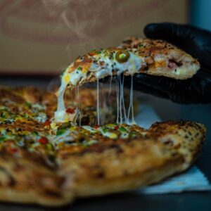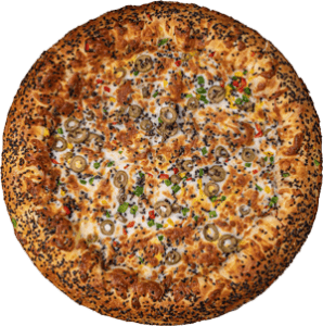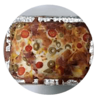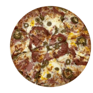خمیر پیتزا آمریکایی، پپرونی ۹۰%، پنیر پیتزا، فلفل هالوپینو، زیتون