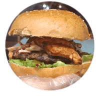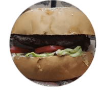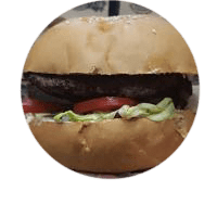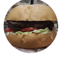 یک عدد برگر دست ساز گوشت گوساله ۱۵۰ گرم، قارچ، پنیر پیتزا، گوجه، خیارشور، کاهو، سس مخصوص، نان گرد